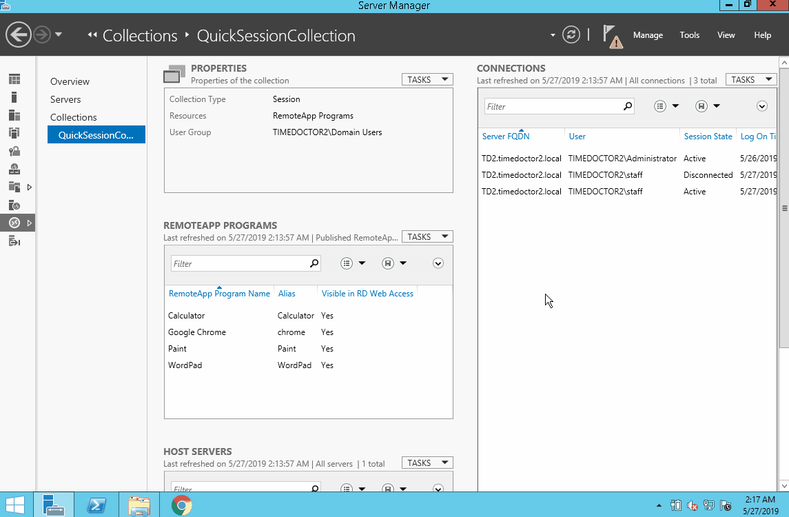Open Server Manager → Remote Desktop Services → Collections → QuickSessionCollection.